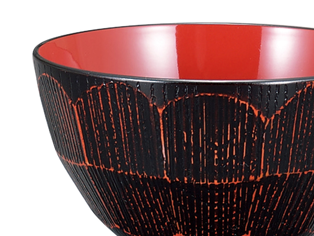 樹脂製で軽くて割れにくい汁椀です。表面には削ったような凹凸があり手に馴染みます。味噌汁やお吸い物など普段使いに最適です。