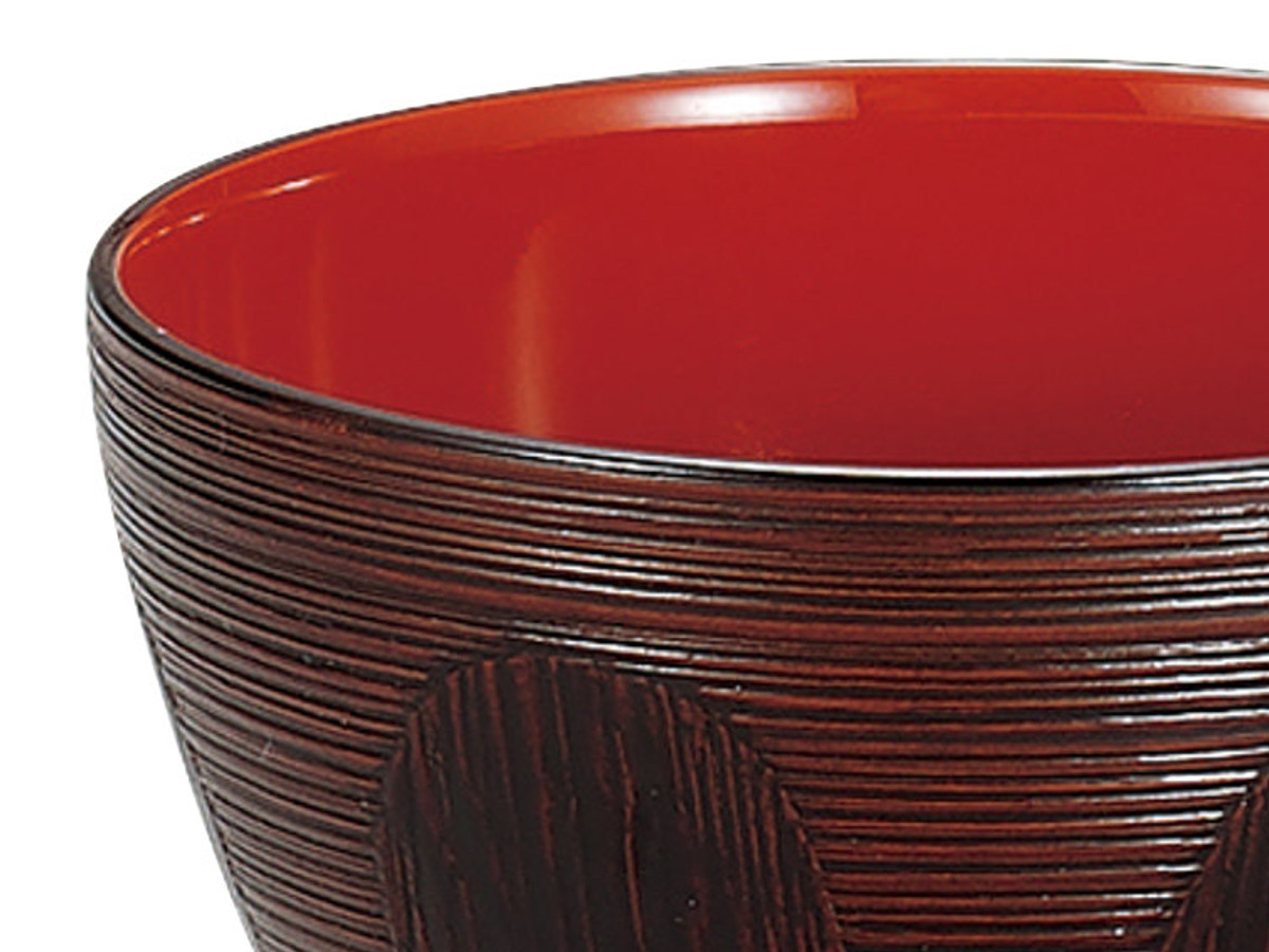樹脂製で軽くて割れにくい汁椀です。刷毛目のやさしい風合いに、亀甲文様をあしらった上品なデザインです。味噌汁やお吸い物など普段使いに最適です。