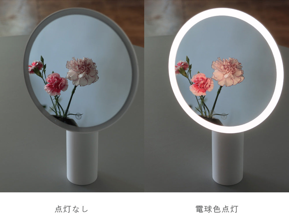 ●3色のLEDライト付きで、メイクや身だしなみに最適なミラーです。