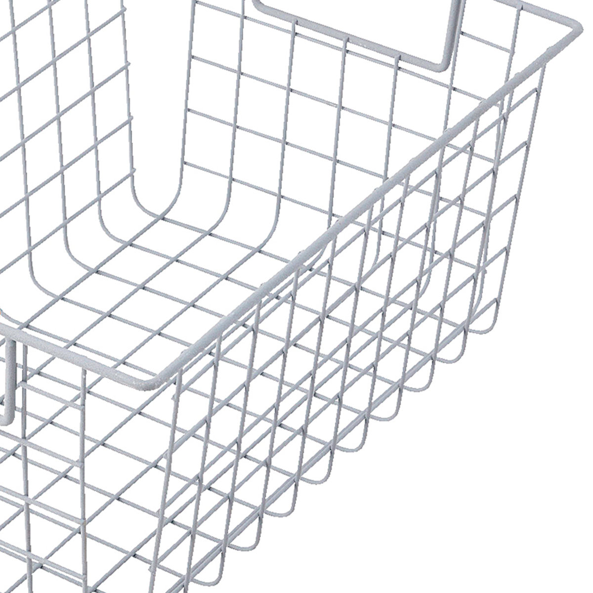 無駄のないスクエア型で、棚などに収まりやすいワイヤーバスケットです。角までしっかり使える形状だから、タオルや日用品、小物類もきれいに整理しやすく、収納スペースを無駄なく活用できます。