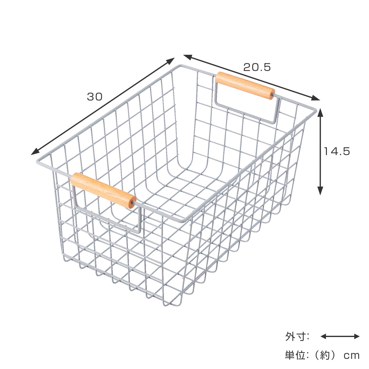 ワイヤーバスケット Sサイズ 幅30cm 木柄取っ手 バスケット かご ワイヤー