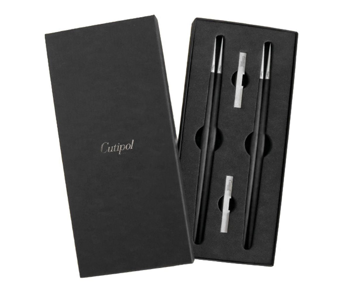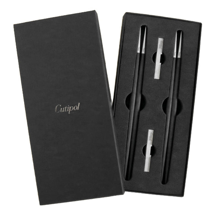 Cutipol クチポール KUBE 箸+箸置き 箱付ペアセット ブラック×ブラック シルバー