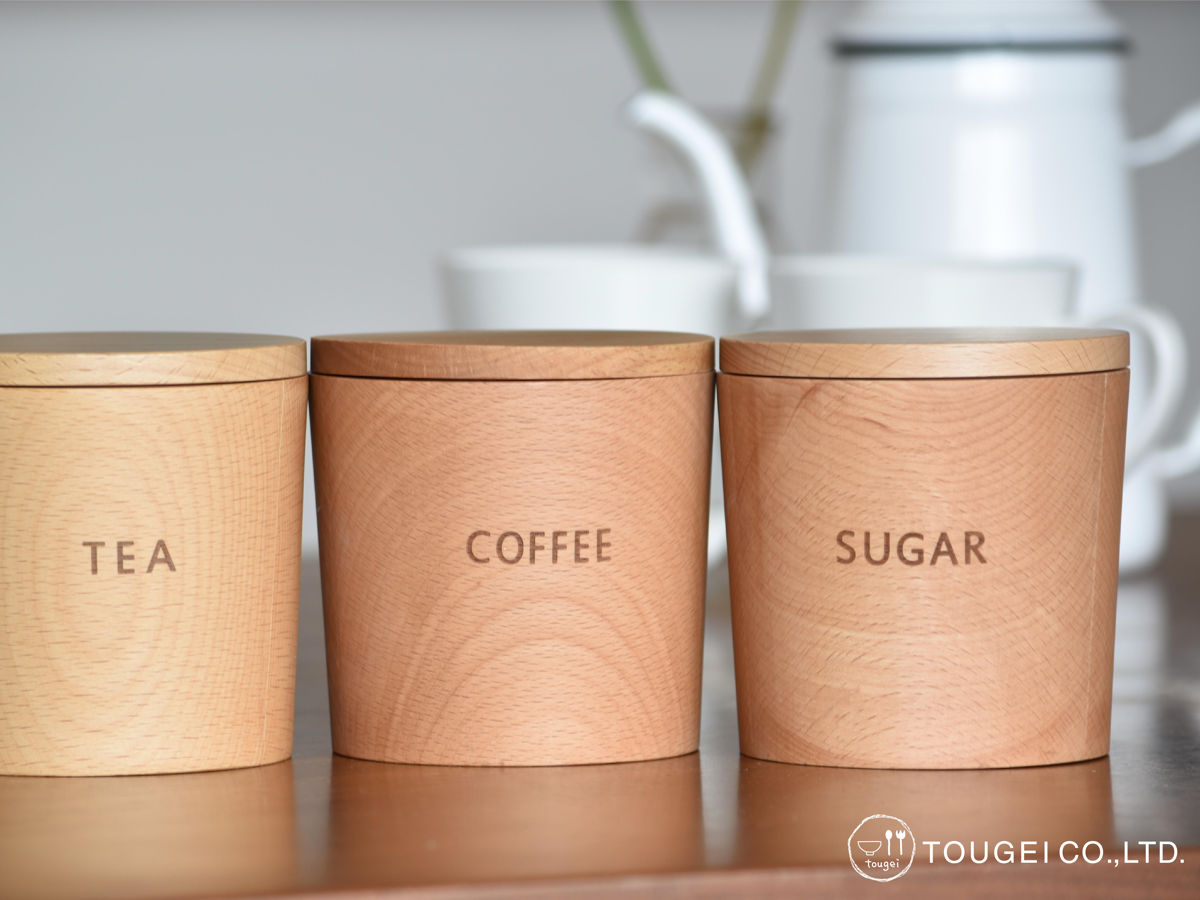 並べて飾ってもかわいい木製キャニスターです。天然木から作られた温かみのあるデザインとなっており、インテリアの邪魔をせず様々なテイストのキッチンに馴染みやすいです。いつもなら隠してしまいたいものも、飾っておきたくなるようなお洒落さです。