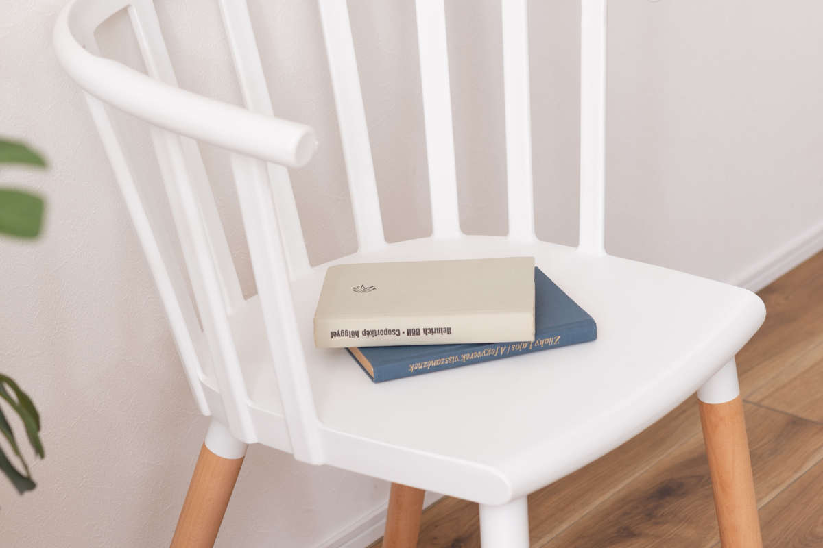 背もたれがスティックバックとなった、ウィンザーデザインのチェア。尖った部分が少ないので出入りが多い場所でも安心です。