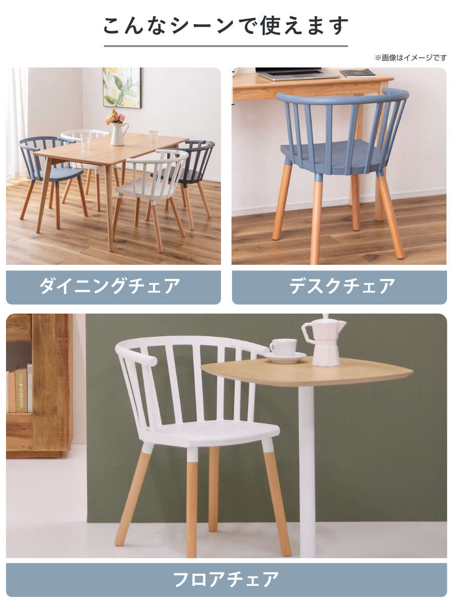 ●清潔感のあるホワイト×天然木脚の北欧ダイニングチェアです。