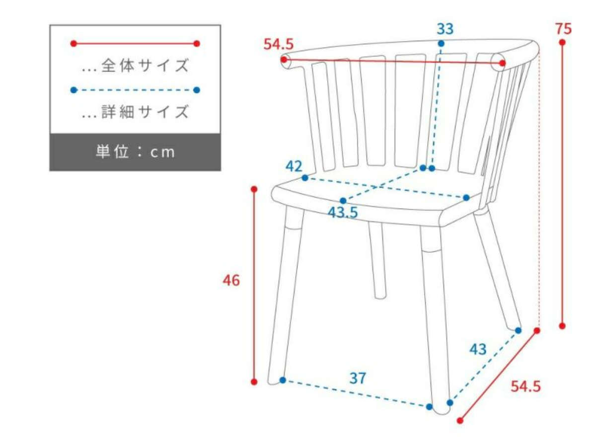 | サイズ | 約 幅54.5×奥行54.5×高さ75(cm) 座面高:約 46(cm) |
