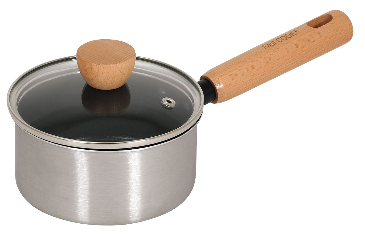 片手鍋 14cm IH対応 ガラス蓋付き ファストクック+ 2層鋼ダイヤモンドコート