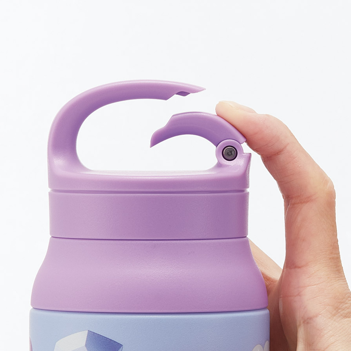 カラビナハンドル付きで持ち運びに便利な水筒です。ボトルだけを持ち運ぶオフィス内の移動や、スポーツやアウトドアなど幅広いシーンに活躍します。また、カラビナをベルトやバッグのループに取り付けることで、わざわざ収納しなくても手軽に持ち運べます。