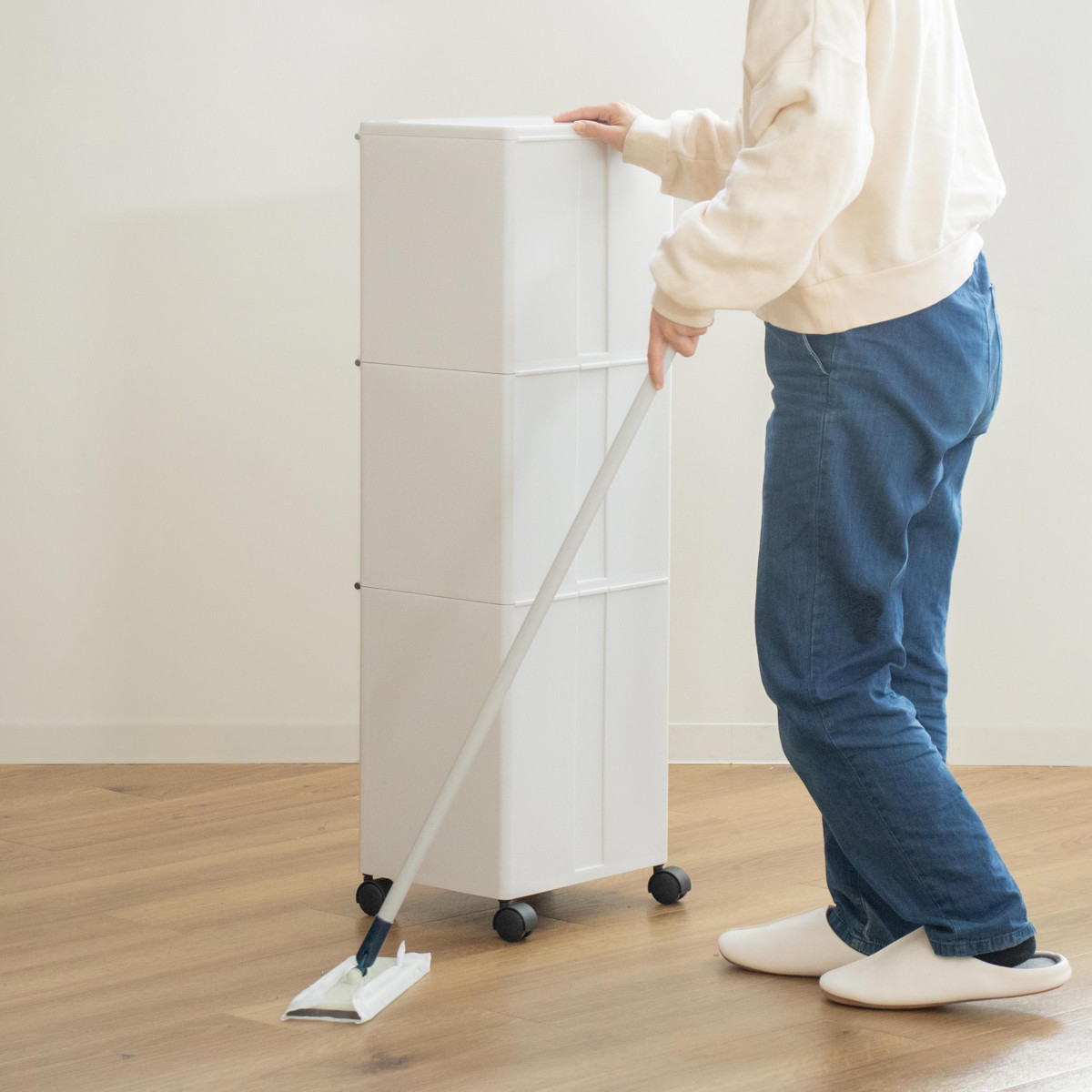 キャスター付きなので、掃除機をかける際などのちょっとした移動の時に便利です。キャスターは取り外し可能で、ゴミ箱を床に直接置くこともできます。