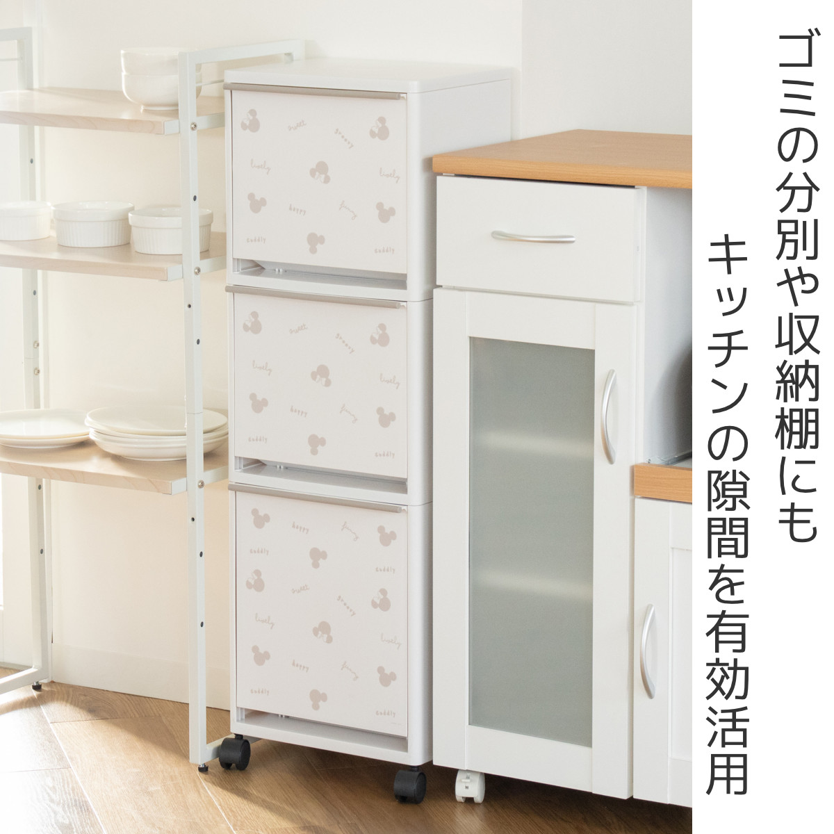 ゴミ箱 43L 3段 縦型 ミッキー 資源ゴミ 分別ワゴン ワイド ディズニー