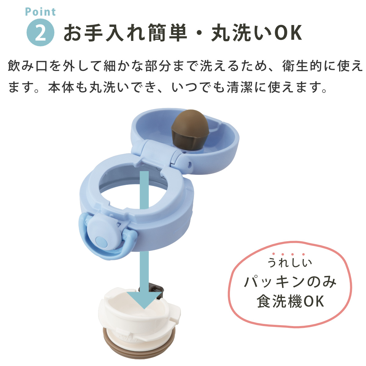 | 材質 | 内びん:ステンレス鋼 胴部:ステンレス鋼(アクリル樹脂塗装) フタカバー:ABS樹脂 フタ・せん本体・飲み口:ポリプロピレン フタパッキン・せんパッキン:シリコーンゴム |