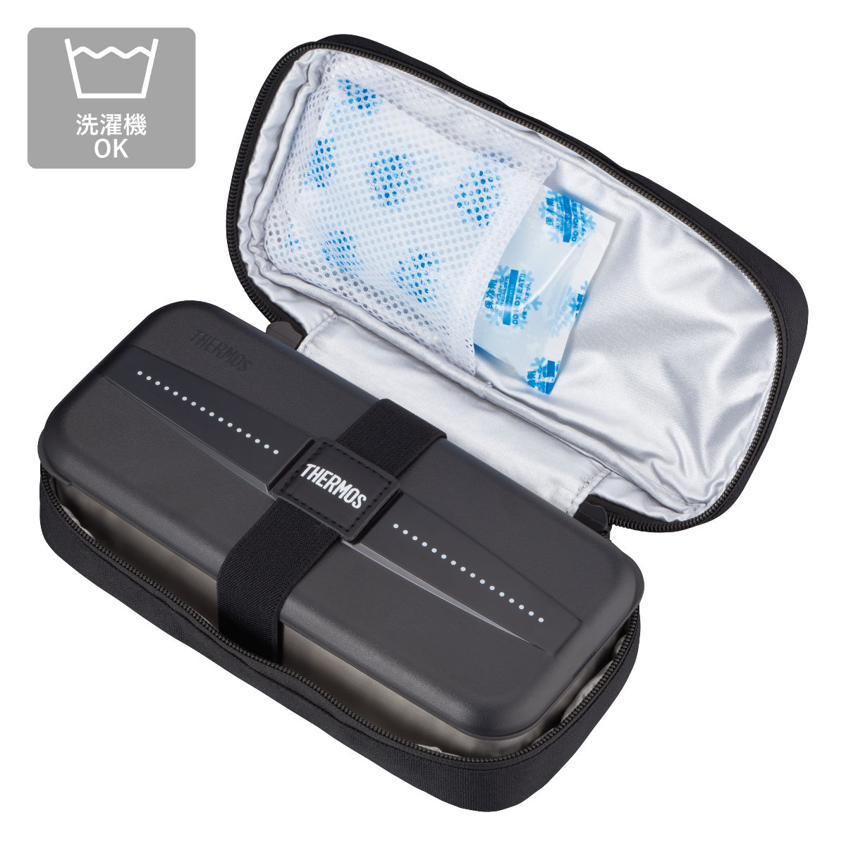 お弁当箱をスッキリ収納できるポーチが付いています。保冷力のある断熱構造のポーチなので、暑い日の持ち歩きも安心です。ポーチの内側にはメッシュポケットが付いているので、保冷剤やふりかけなどを入れることができます。また、洗濯機も使用でき、清潔にお使いいただけます。