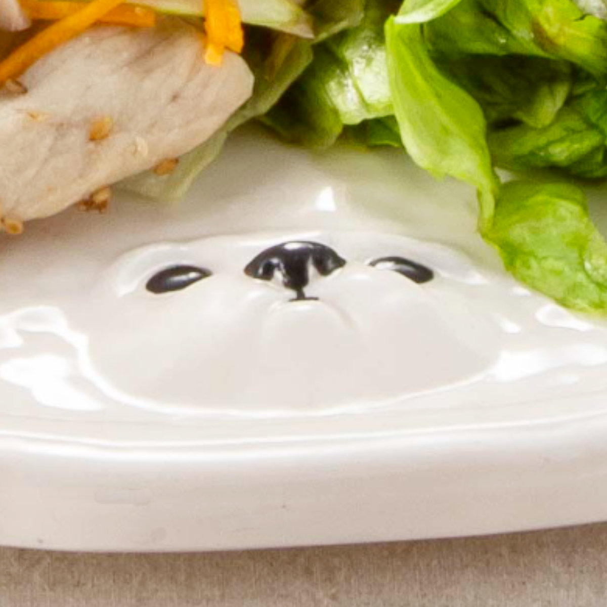 顔の部分がほんのり立体的で存在感があり、テーブルに置くだけで可愛さ満点です。メイン料理やサラダを盛り付けるとさらに映え、毎日の食事やおもてなしの時間を楽しく演出してくれます。