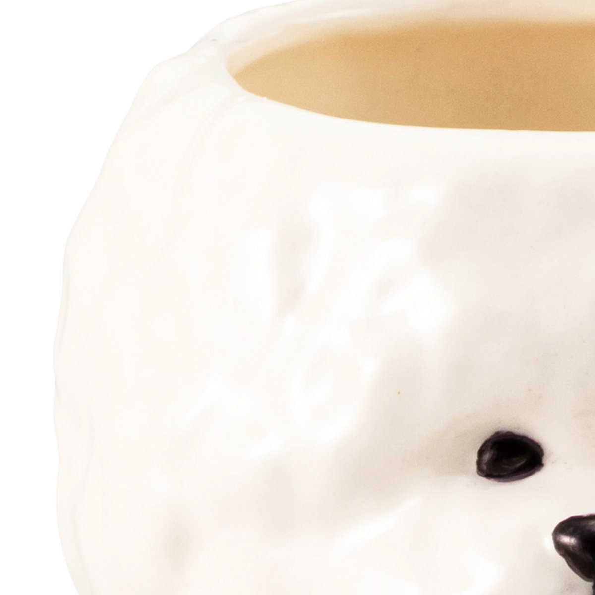 ビションフリーゼの愛らしい表情をそのまま形にしたお茶椀です。ご飯をよそえば、頭の部分がふんわりこんもりと盛り上がり、まるでビションフリーゼのふわふわの毛並みに。テーブルに置くだけで可愛さ満点、毎日の食事が楽しくなります。