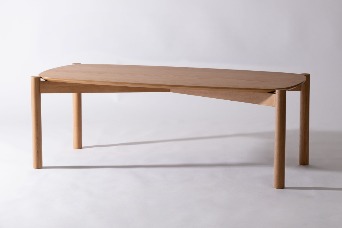丸みを効かせたフォルムと外側に出た丸足が生み出す、やさしい印象のテーブルです。やわらかさとすっきり感をバランスよく取り入れ、甘くなりすぎないデザインに仕上げています。ナチュラルからモダンまで、幅広い空間に馴染みます。