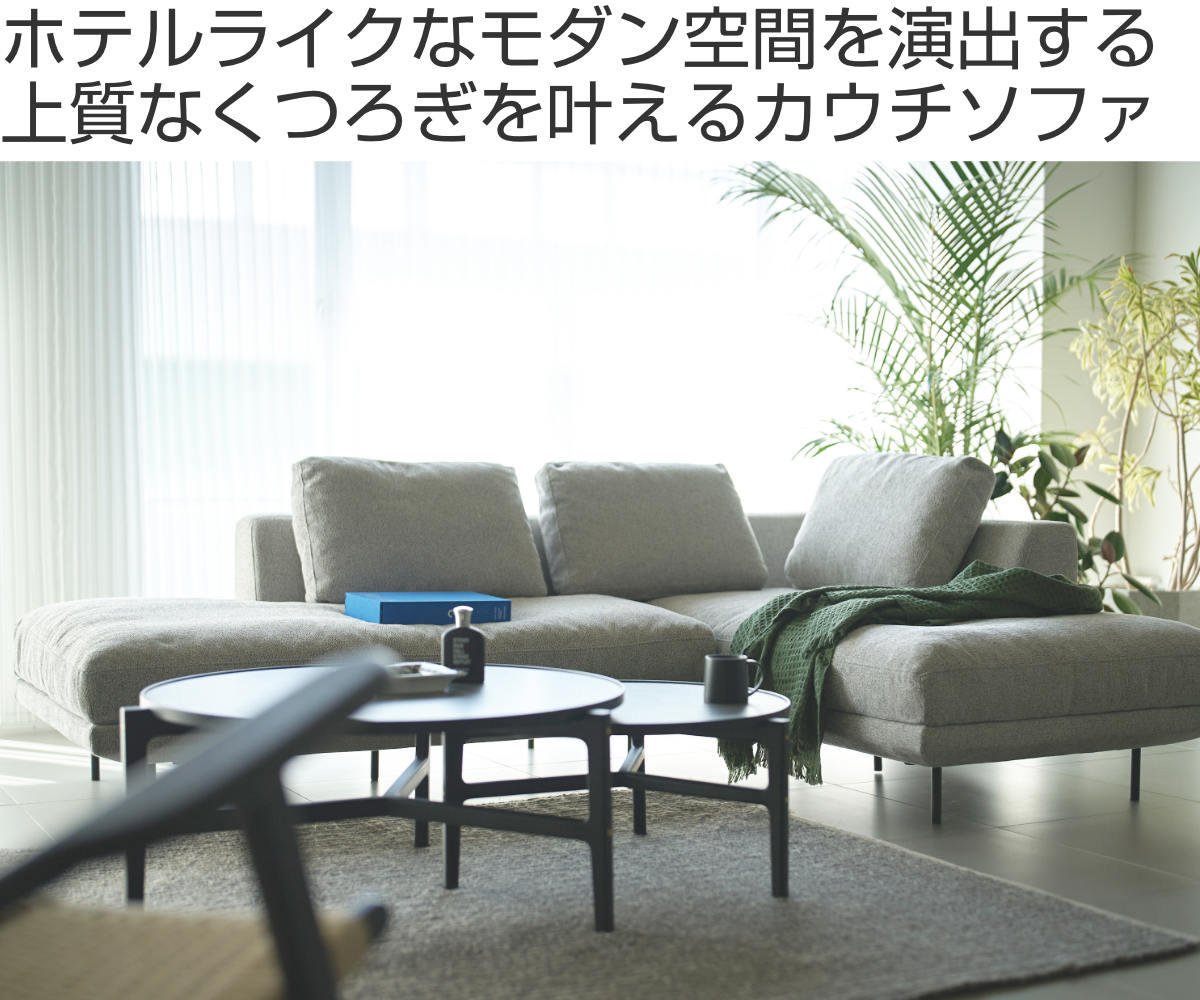奥行きをしっかり確保した座面設計です。脚を伸ばしてくつろげるカウチスタイルで、リラックスタイムを快適に過ごせます。