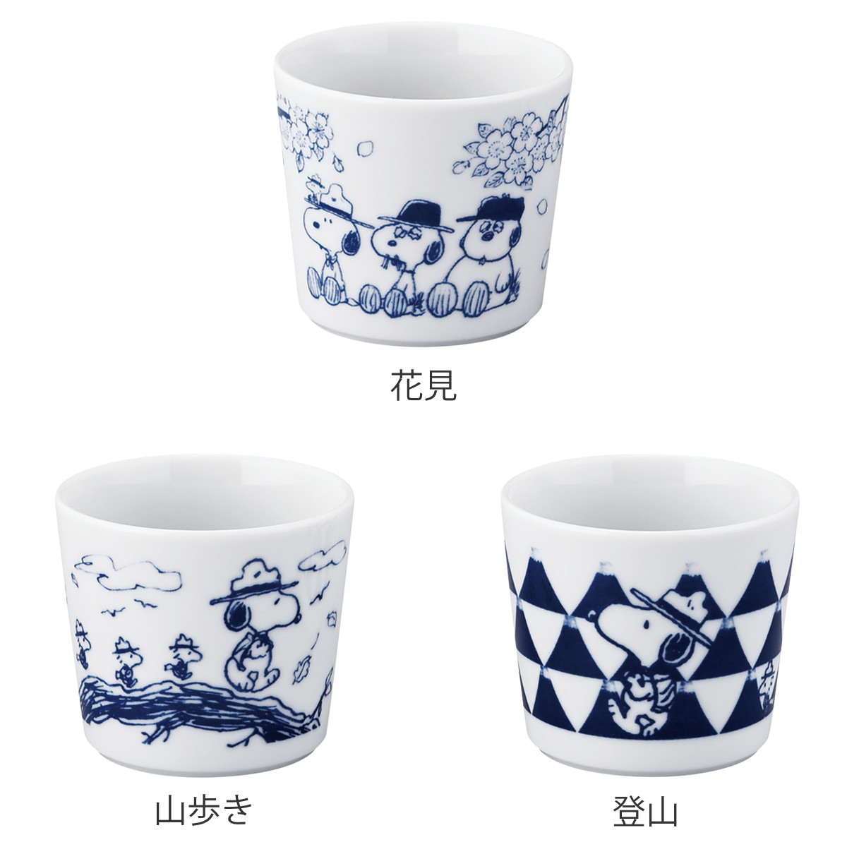 ピーナッツの仲間たちがお花見を楽しんだり、山歩きや登山をしている様子を描いた、磁器製のコップです。幅広い世代に愛されるキャラクターの食器は、子どもから大人まで使いやすくギフトにもおすすめです。