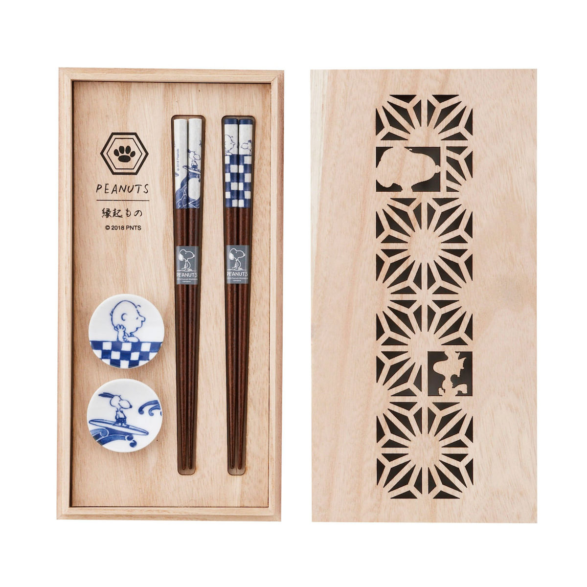 日本の伝統文様にピーナッツの仲間たちをユニークにデザインした染付の箸セットです。日本の伝統文様には、幸せを願う思いや吉事を祝う気持ちが込められています。幅広い世代に愛されるキャラクターの食器は、子どもから大人まで使いやすくギフトにもおすすめです。
