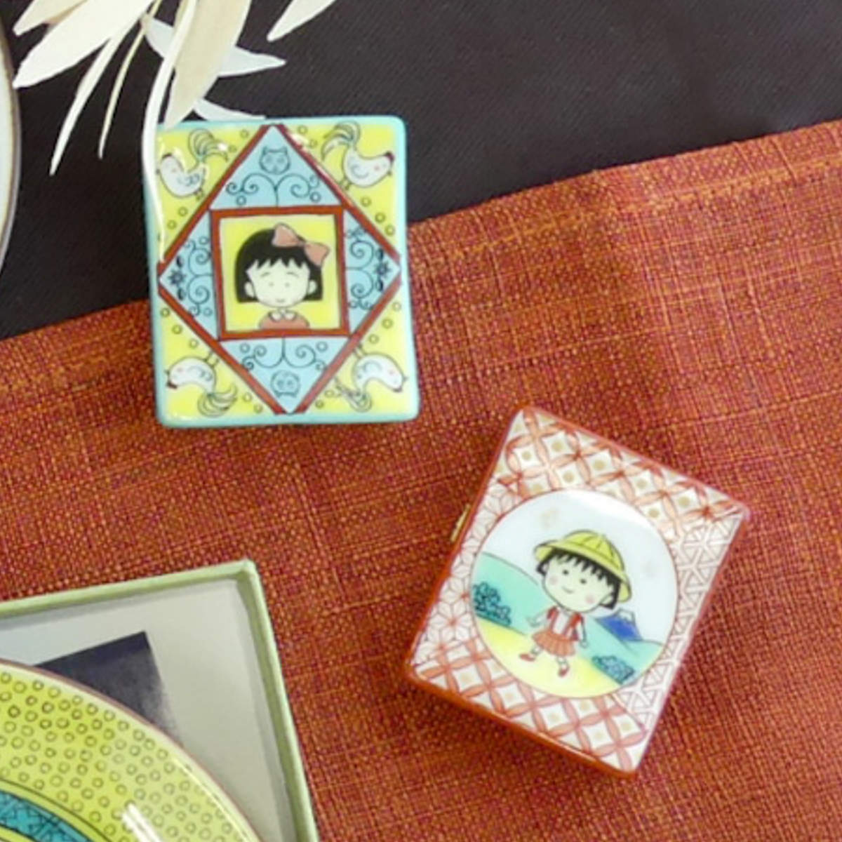日本の伝統的な焼き物のひとつ、九谷焼で仕上げた箸置きです。1990年にテレビアニメ放送がスタートしてから35年を迎えた「ちびまる子ちゃん」の世界観を、繊細な絵付けで表現しました。食卓に上品な彩りを添えるとともに、キャラクターグッズとしてのコレクション性も高く、自分用にはもちろん、贈り物にもおすすめです。