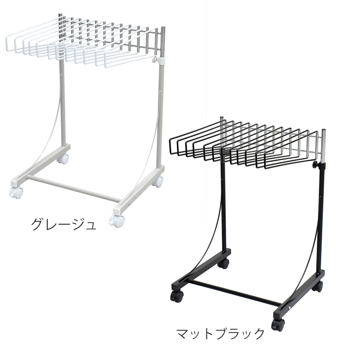 カラーは、今の暮らしに合わせやすいグレージュとマットブラックです。落ち着いたトーンで、クローゼットやお部屋の雰囲気に自然に馴染み、見せる収納にもおすすめです。
