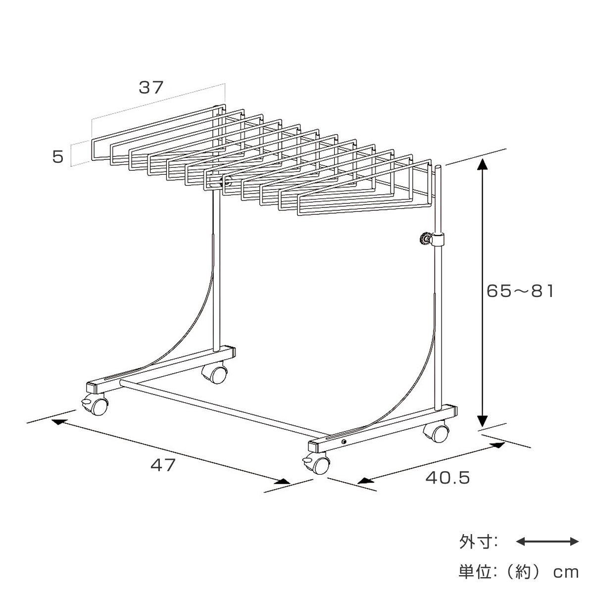 | サイズ | 本体:約 幅47×奥行40.5×高さ65~81(cm) ズボン掛け:約 幅37×高さ5(cm) |