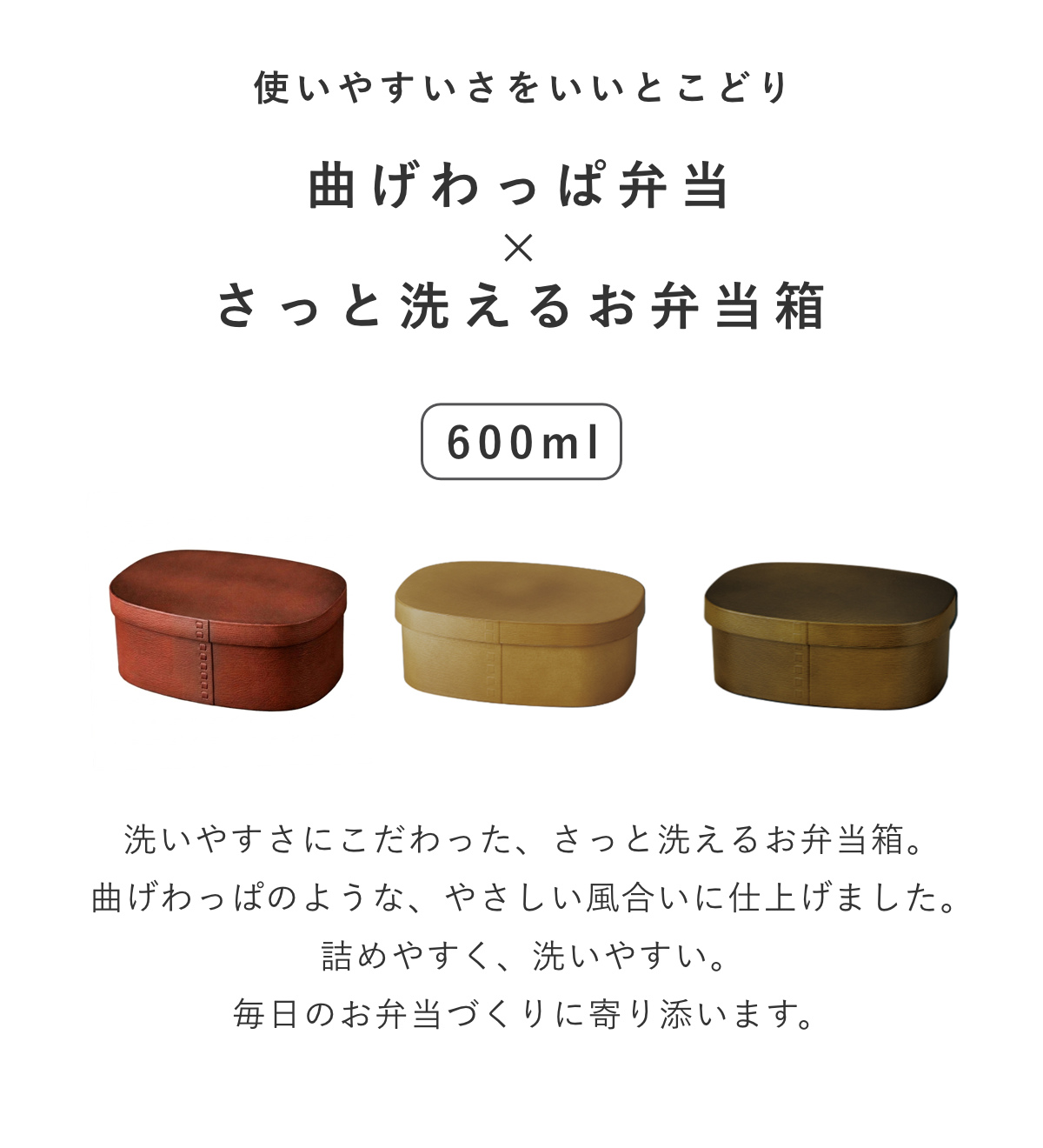 弁当箱 さっと洗えるわっぱ弁当 600ml ガーデン