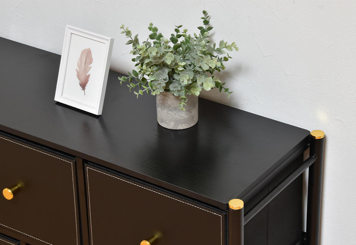 天板はディスプレイスペースにおすすめで、あたたかみのある木目調が空間にやさしく馴染みます。お気に入りの雑貨やグリーンを飾って、インテリアを楽しめます。