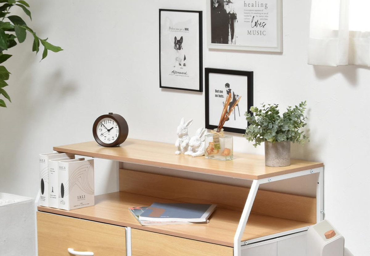 天板はテレビや雑貨を並べても余裕のあるサイズです。2段仕様のため、さまざまなアイテムを置いてディスプレイを楽しめます。