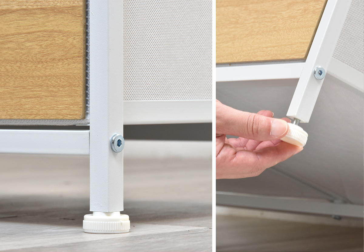 手で回すだけで簡単に高さの微調整が可能なアジャスター付きです。ちょっとした段差があってもガタ付きを軽減してくれるので快適に使えます。