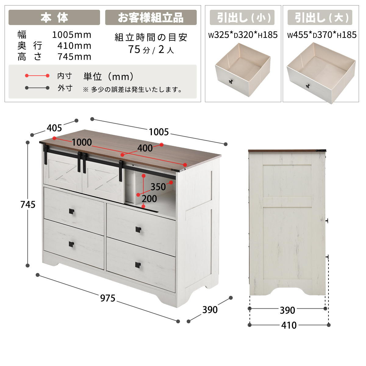 | 引き出し1段あたり耐荷重 | 5kg |
