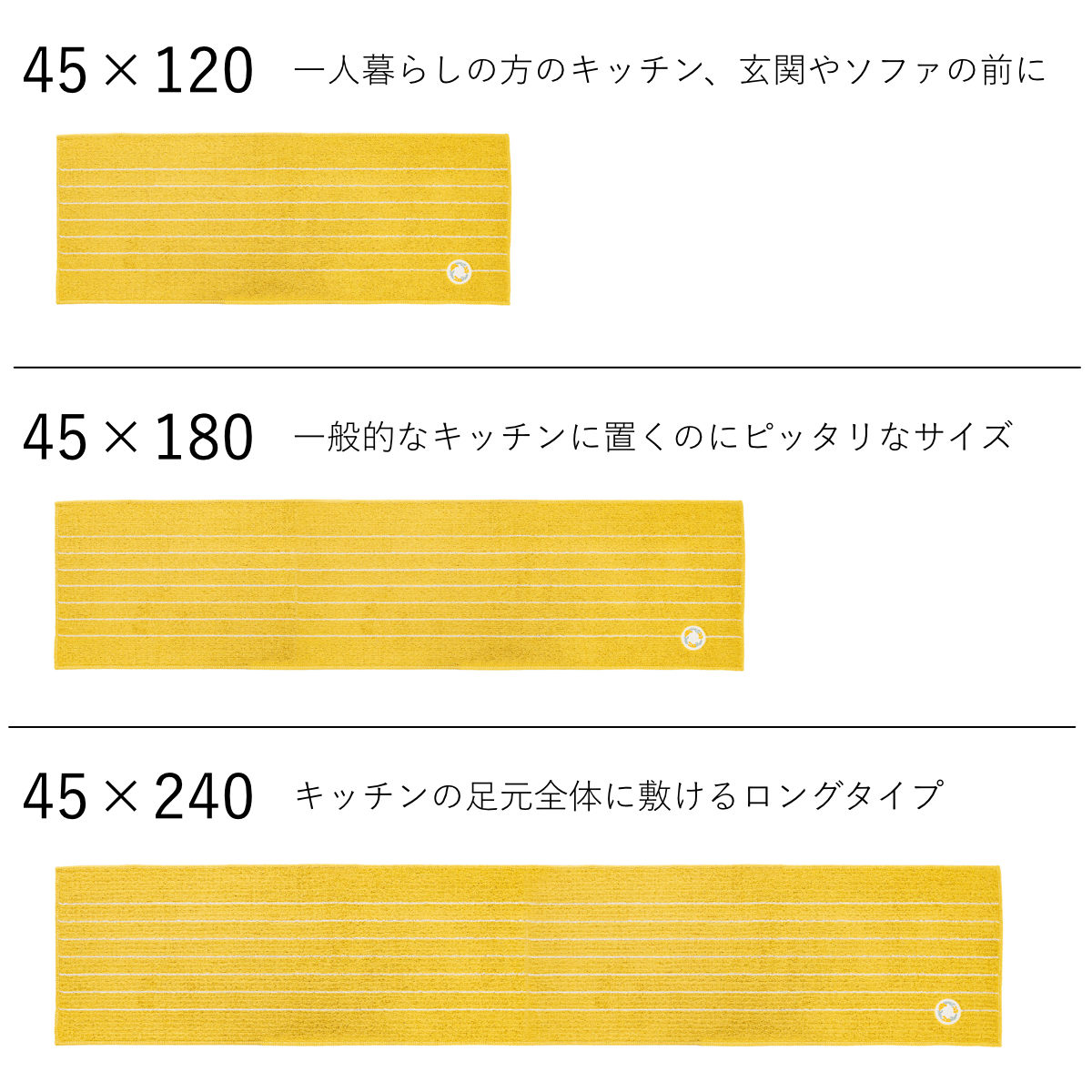 ●45×240cm・・・キッチンの足元全体に敷けるロングサイズ。