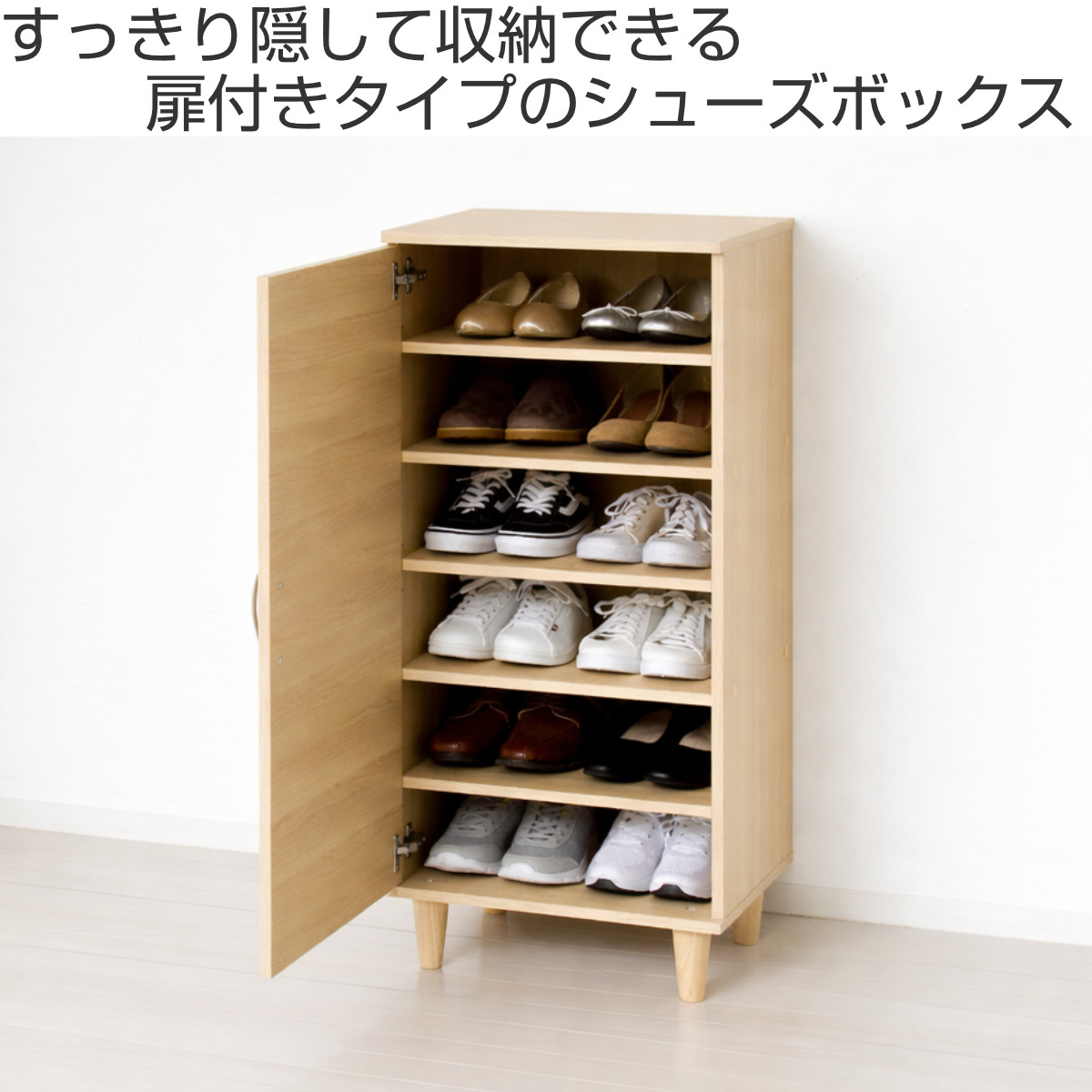 靴をすっきり収納できる扉付きシューズボックス 幅45cm