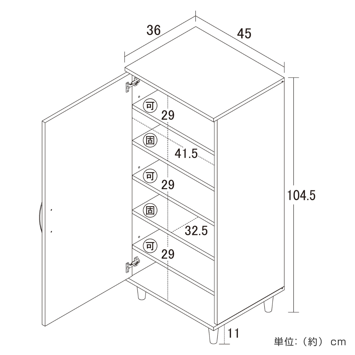 | サイズ | 約 幅45×奥行36×高さ104.5(cm) |