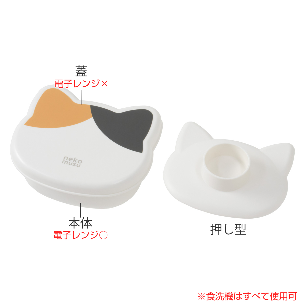 かわいい猫の形をしたおにぎりが作れます。塩むすびに海苔を使うことでアレンジは無限に広がります。お気に入りのキャラクターを作って楽しいランチタイムを過ごせます。