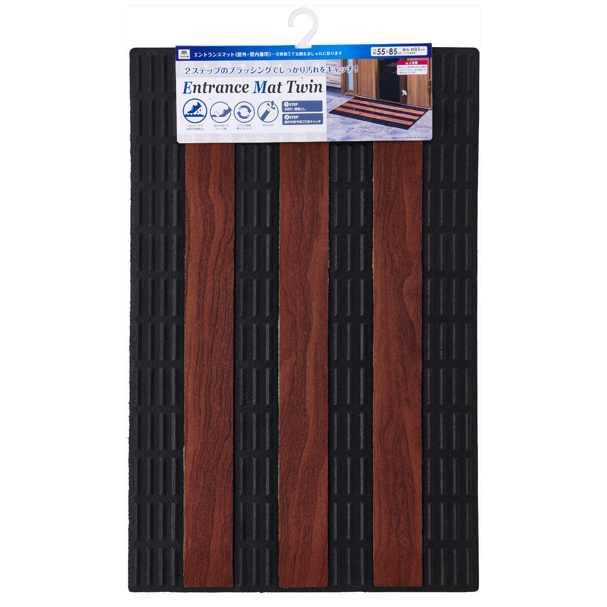 玄関マット 泥落とし 55cm×85cm 屋内・屋外兼用 エントランスマット ウッドボーダー