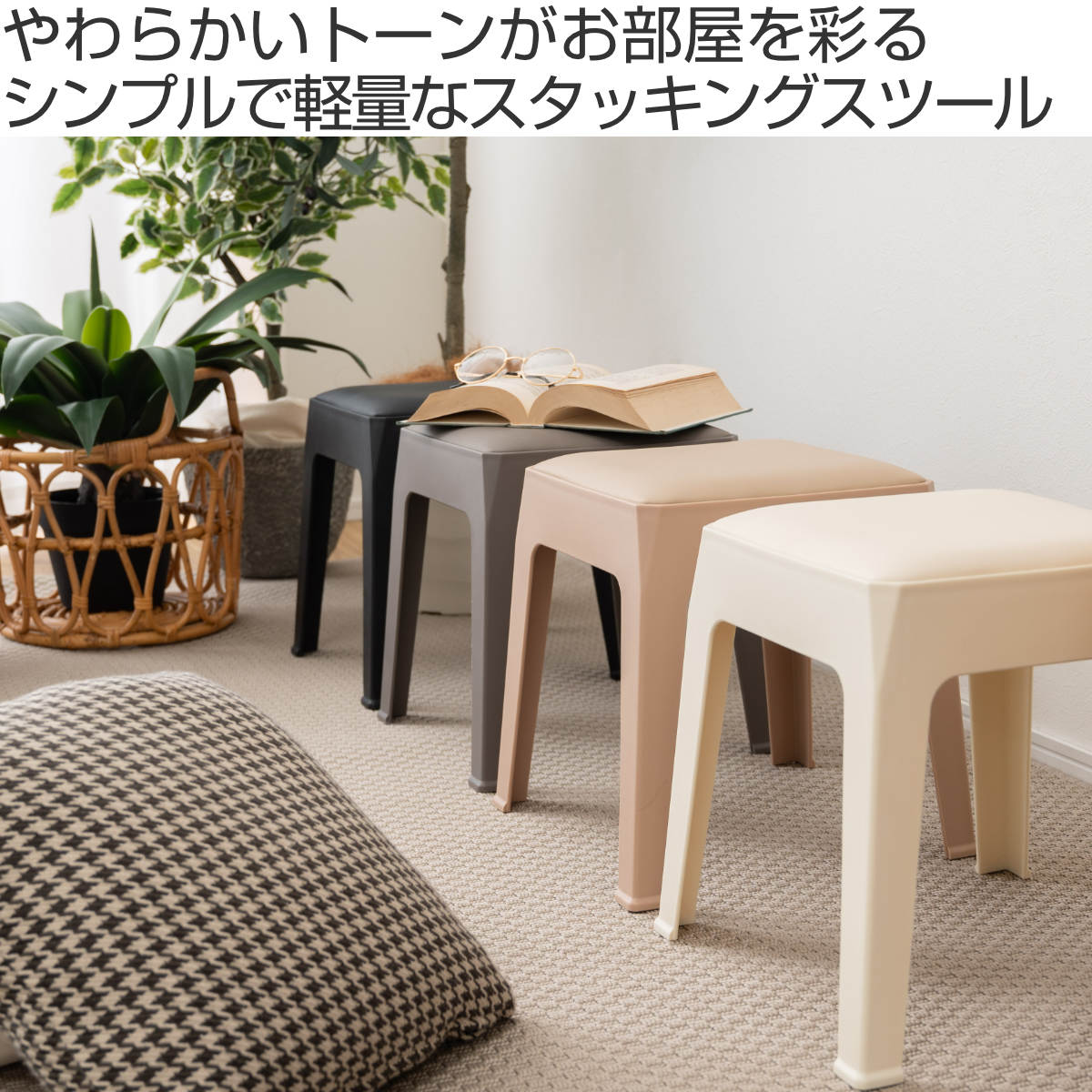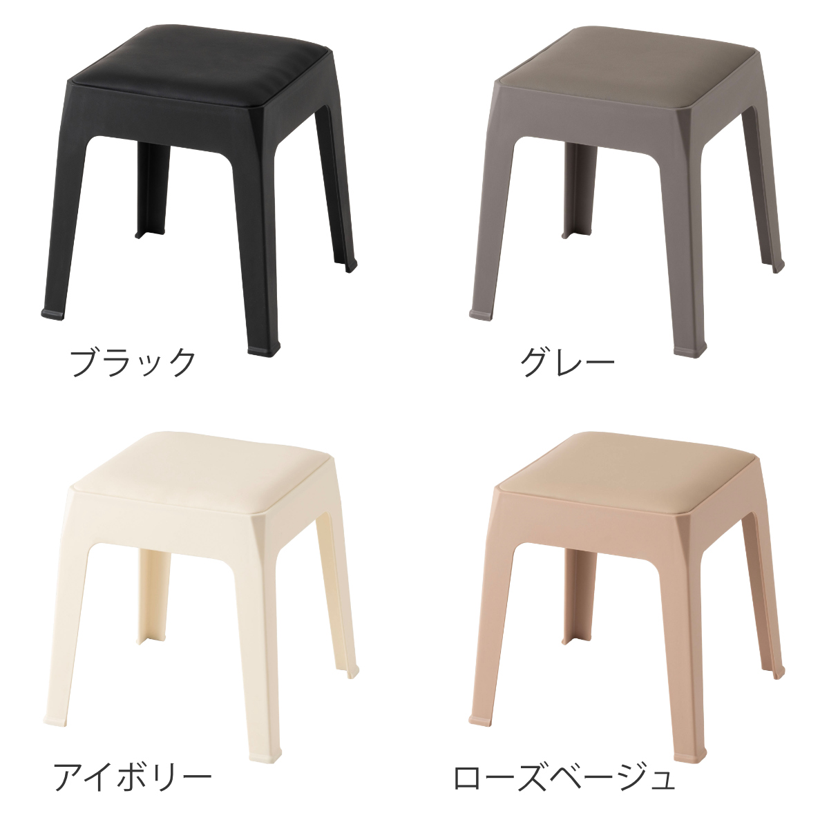 カラーはブラック、グレー、アイボリー、ローズベージュの全4色。やさしいニュアンスカラーと空間を引き締めるブラックを揃え、お部屋のテイストに合わせてお選びいただけます。