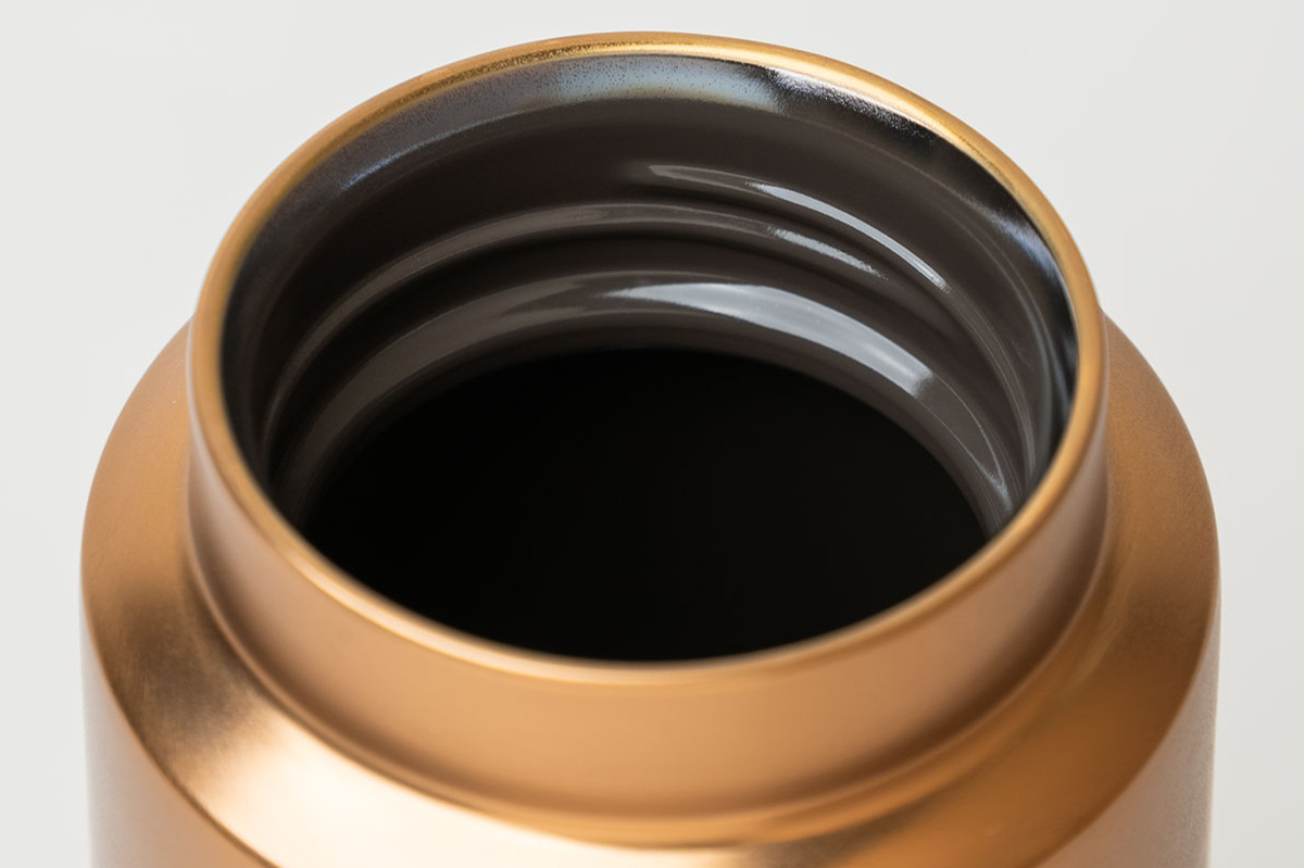 ボトルの内側にはセラミックコーティングを施し、コーヒー本来の豊かな香りと味わいを楽しめます。素材特有のにおいを抑えることで雑味を軽減し、豆が持つ風味をよりクリアに引き立てます。最後のひと口まで、豊かな味わいが広がります。