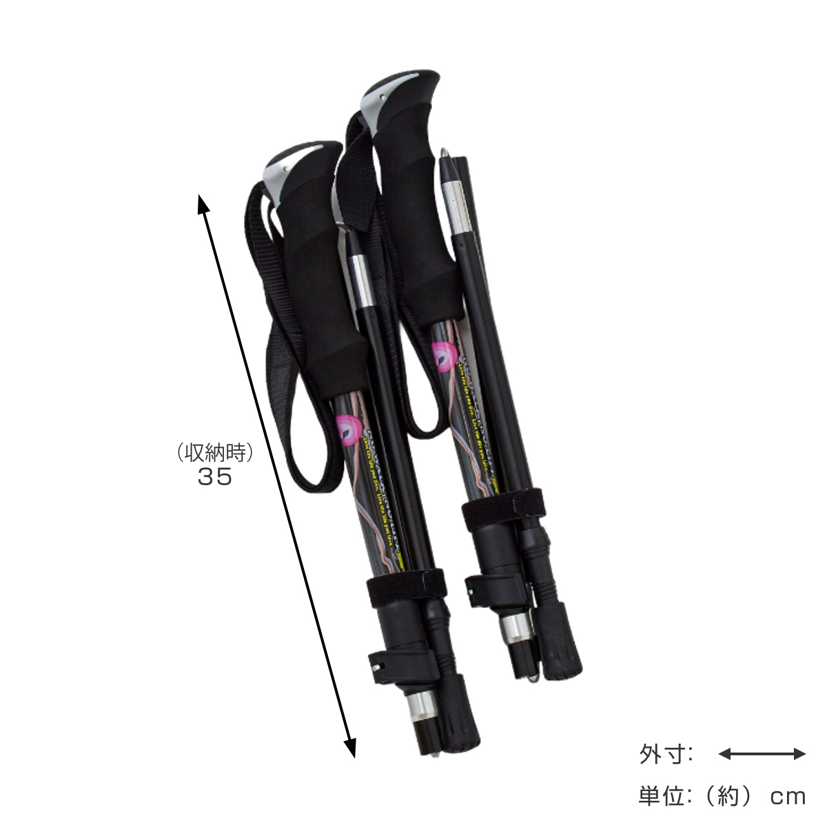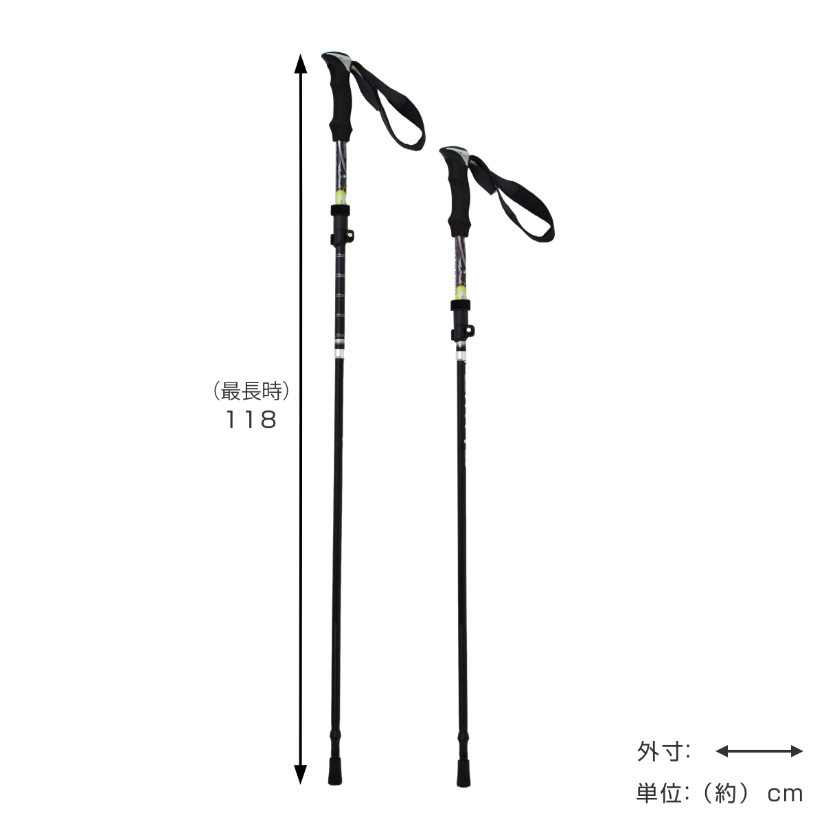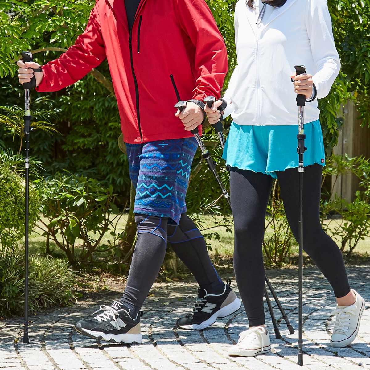 長さ調節ができる伸縮式ウォーキングポールです。身長や歩行スタイルに合わせて調節でき、自分に合った高さで快適にお使いいただけます。