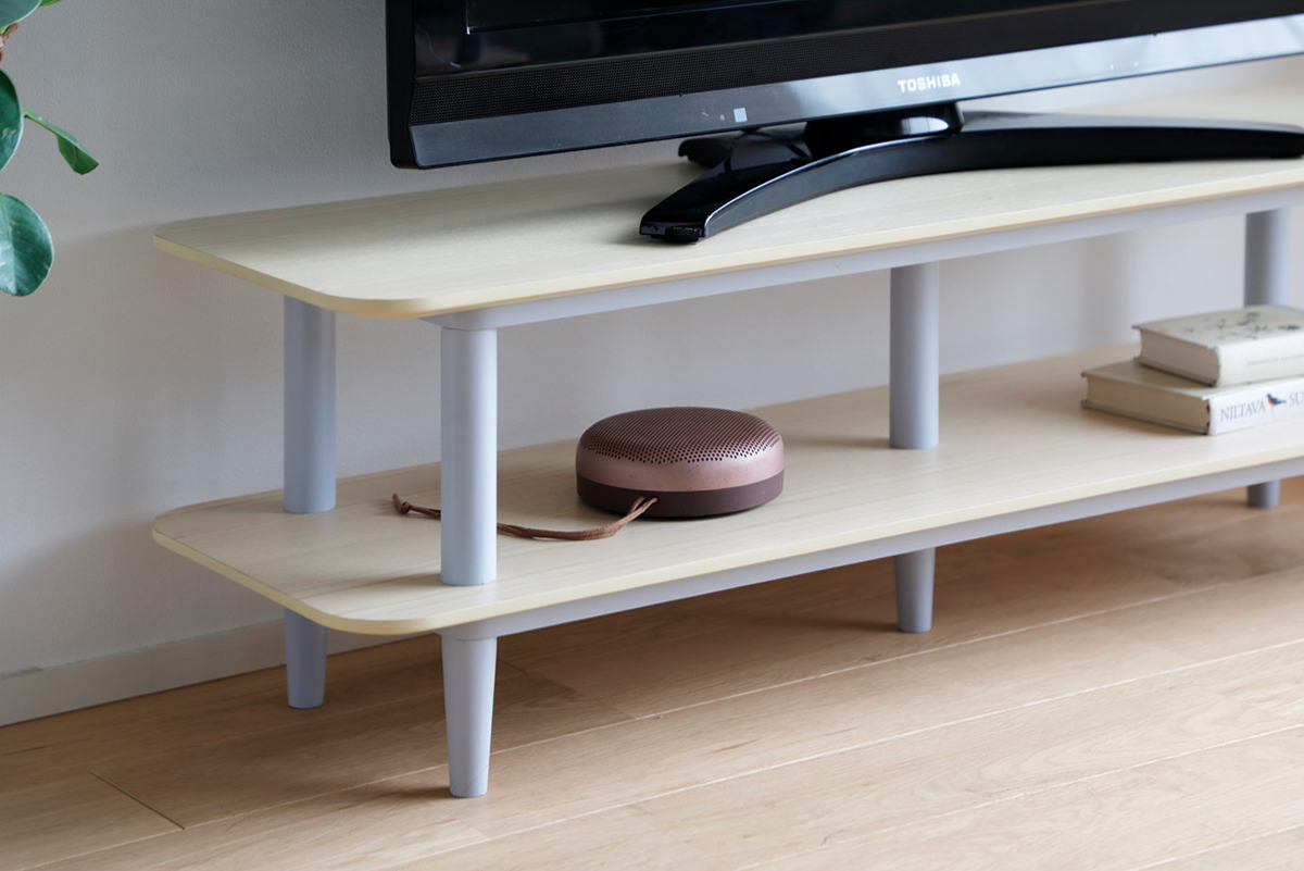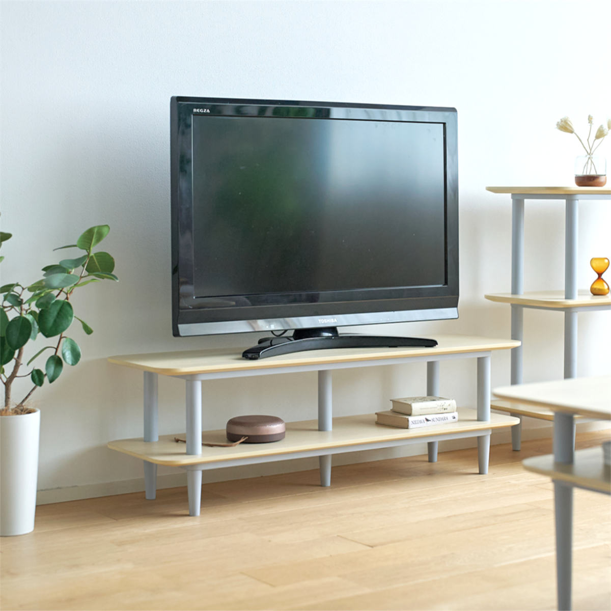 小ぶりで設置しやすいテレビ台です。アッシュ材のナチュラルで優しい風合いと、グレーの落ち着いたカラーリングが可愛らしいシリーズです。組み立て時に工具が要らないので、組み立て家具や工具を扱うのが苦手な方にもおすすめです。