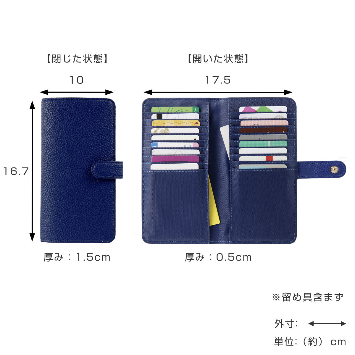 | サイズ | 閉じた状態:約 幅10×奥行1.5×高さ16.7(cm) 開いた状態:約 幅17.5×奥行0.5×高さ16.7(cm) ※留め部含まず |