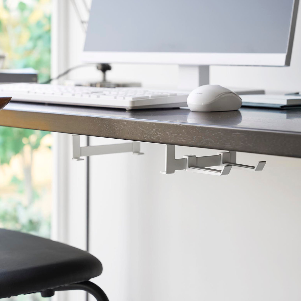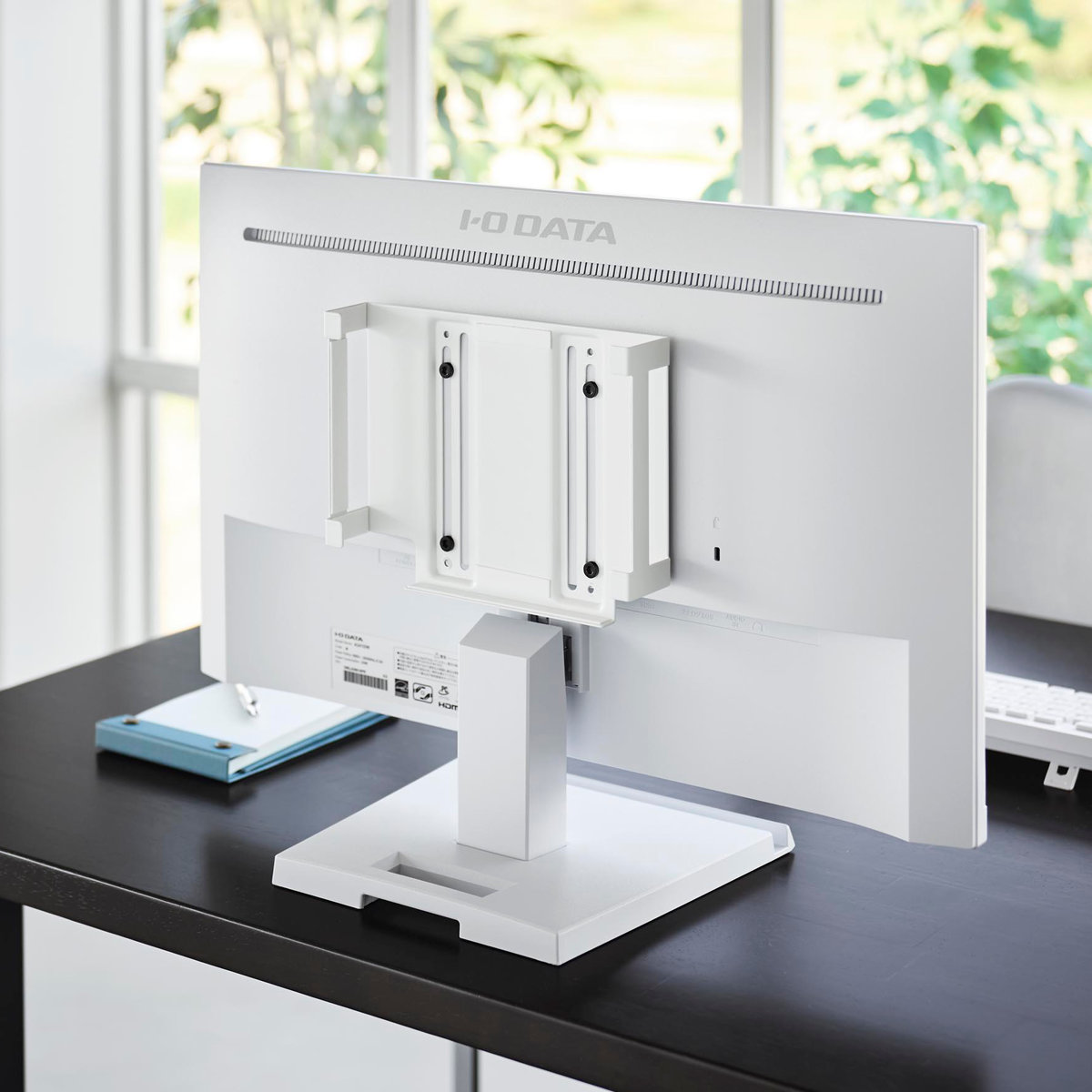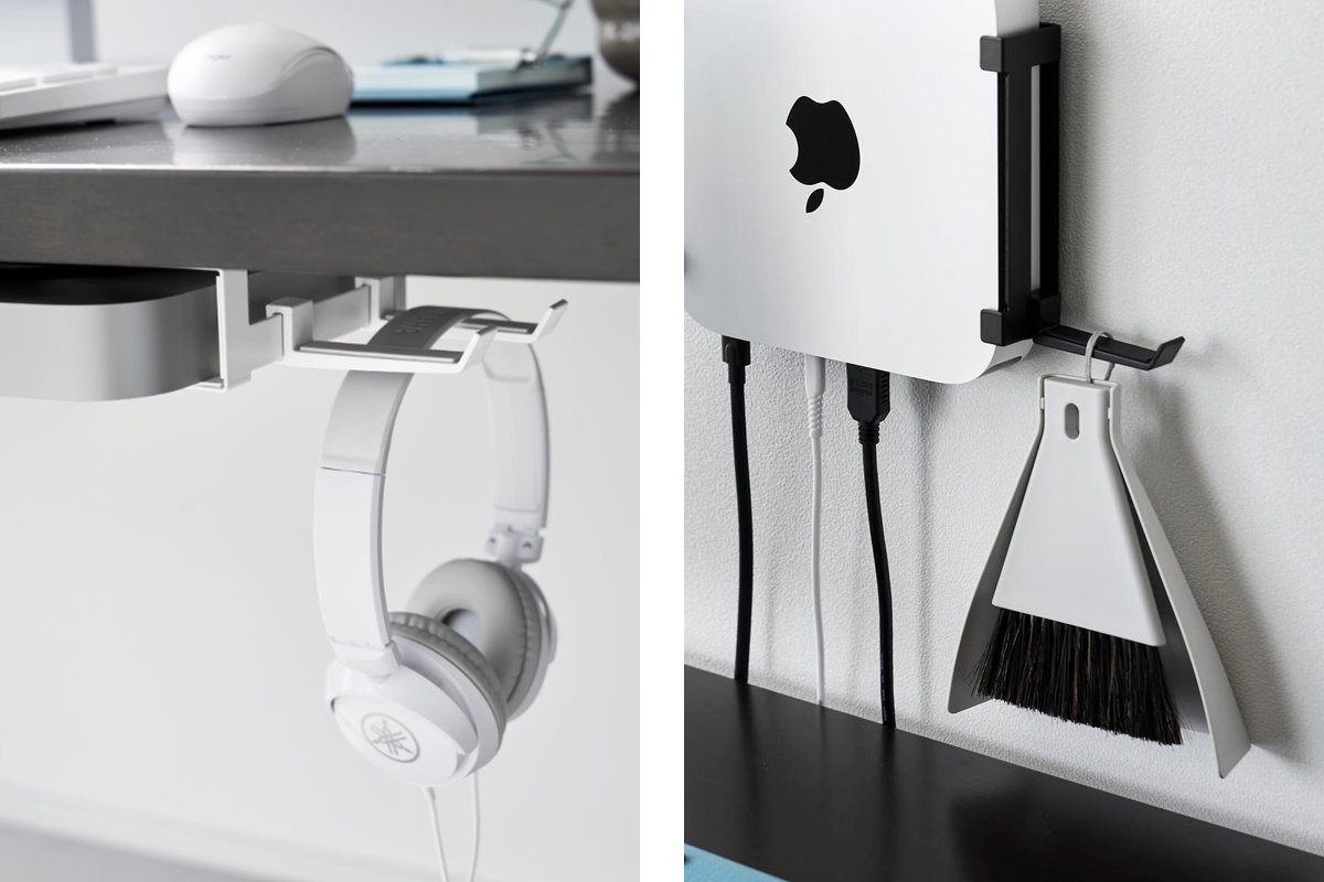 対応する小型PCを、モニター背面・デスク下・壁面の3通りで収納できるラックです。モニター背面やデスク下に設置して、デスク上を広く使うことができます。