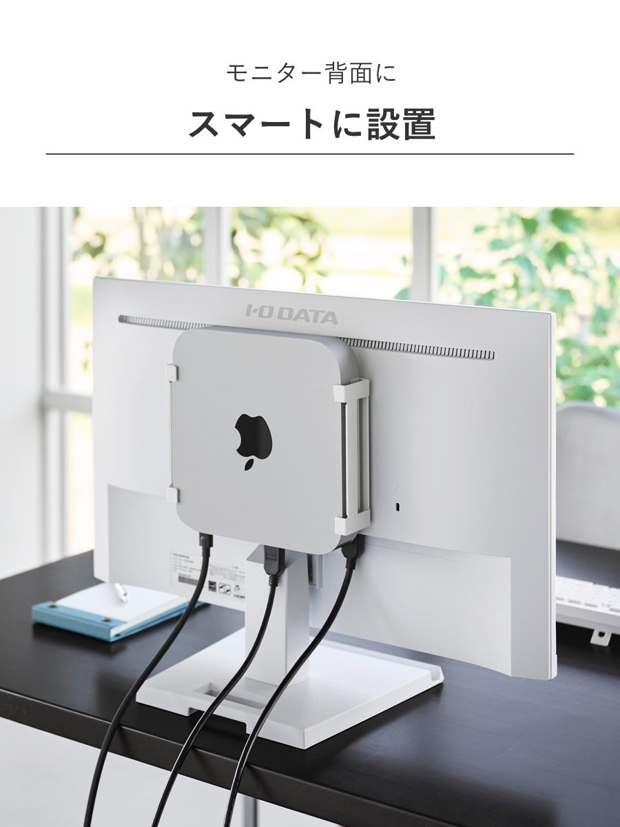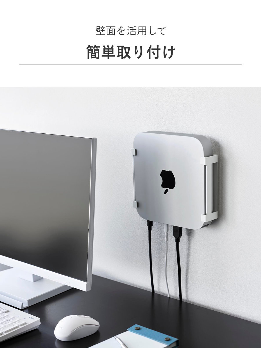 | 備考 | 【取り付け可能な天板】 木製・積層合板製の天板(厚さ1.5cm以上)のデスクやテーブル、キッチンカウンター 【取り付け可能なパソコンモニター】 モニター背面VESA規格対応ネジ穴のピッチ:縦13cm以内×横7.5cm・縦11cm以内×横10cm 【取り付け可能な壁】 石こうボードピン使用時:壁紙・布壁紙・ビニール壁紙貼りなどの石こうボード、薄ベニヤ 木ネジ使用時:柱・板壁(厚さ1cm以上)・プリント合板(裏側に水平にサンがある場所)・裏側に下地材(間柱)が入っている壁 【対応機種】 Mac mini M2 |