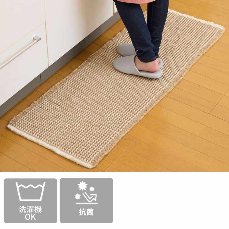 ふわふわ気持ちいい 厚手のワッフル織りキッチンマット