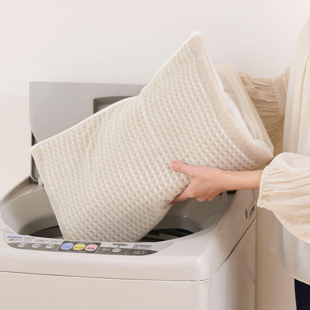 ●洗濯ネットに入れて洗濯機で丸洗いでき、お手入れ簡単です。