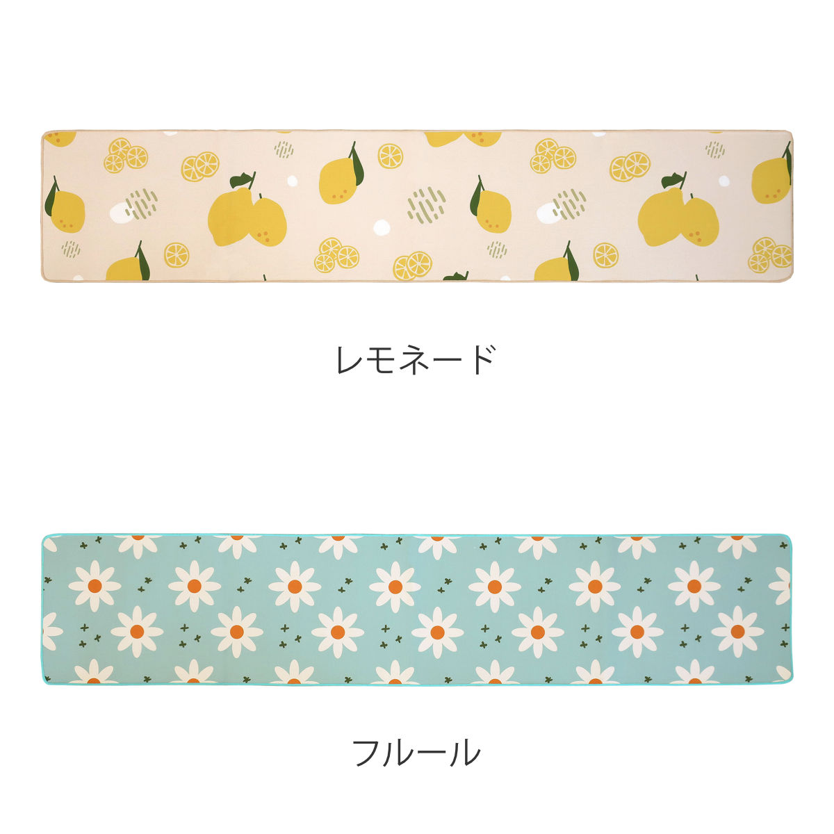 レトロ感のあるレモン柄と花柄がお洒落なマットです。キッチンはもちろん、玄関やベッド横、ソファ下など、お部屋のアクセントとしてもご使用いただけます。