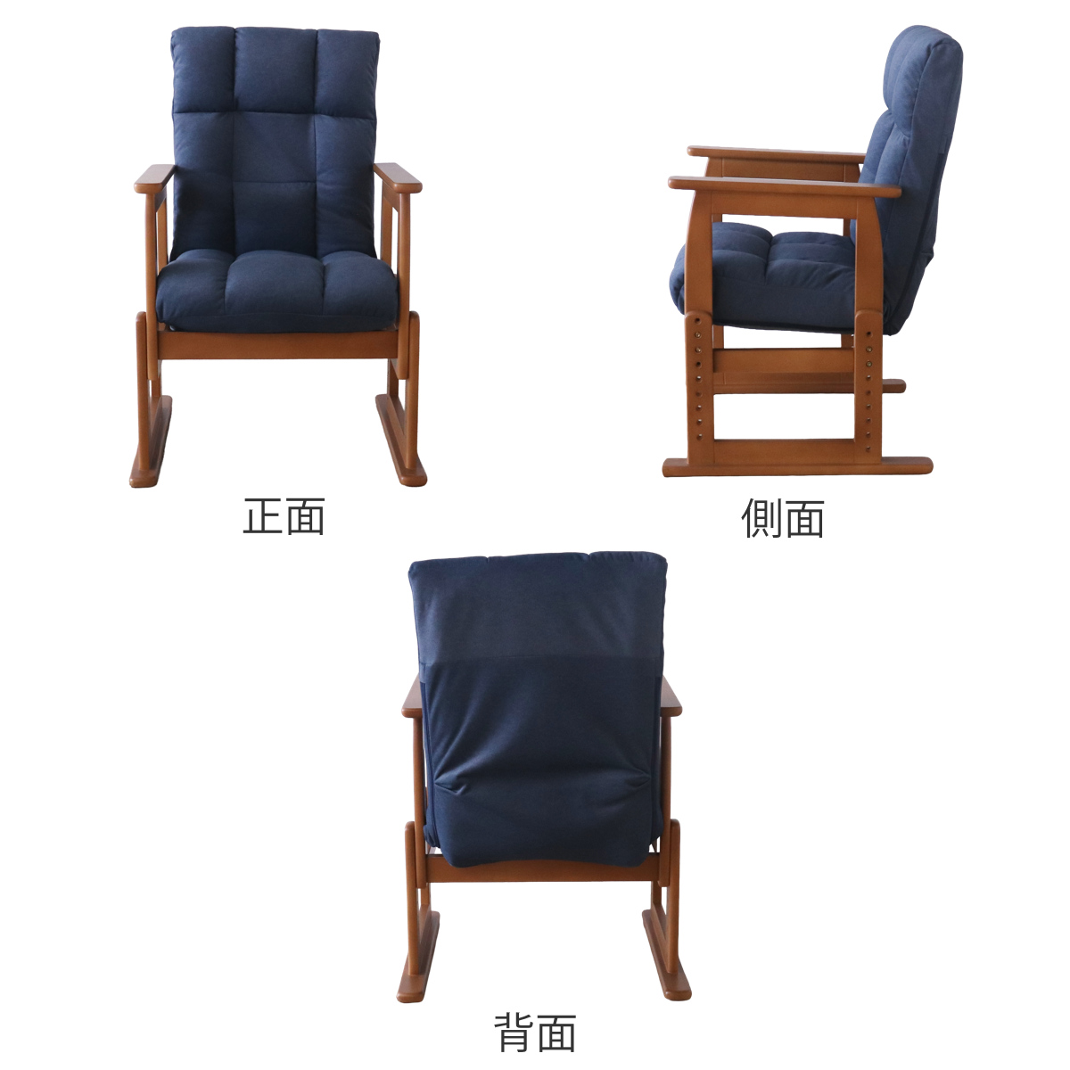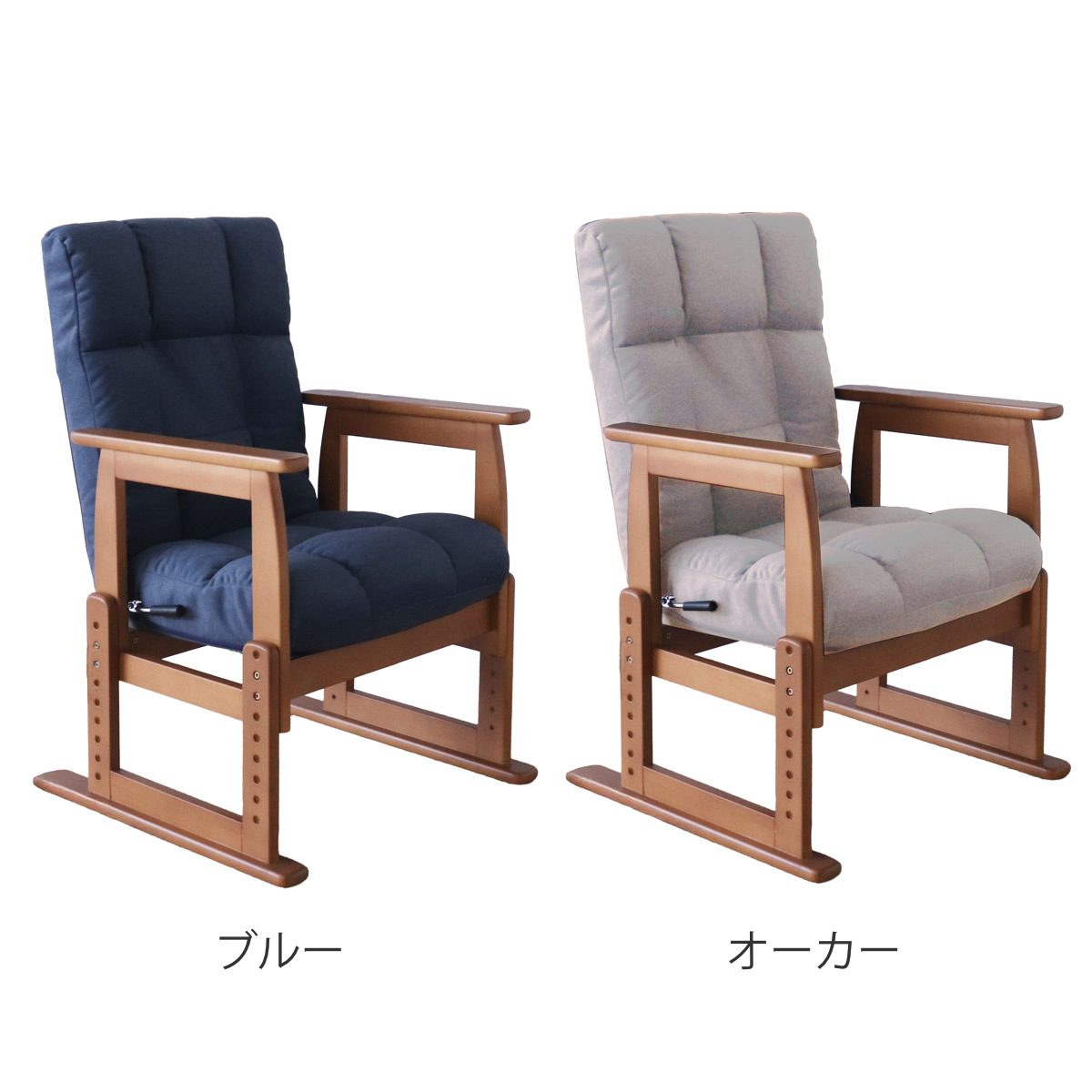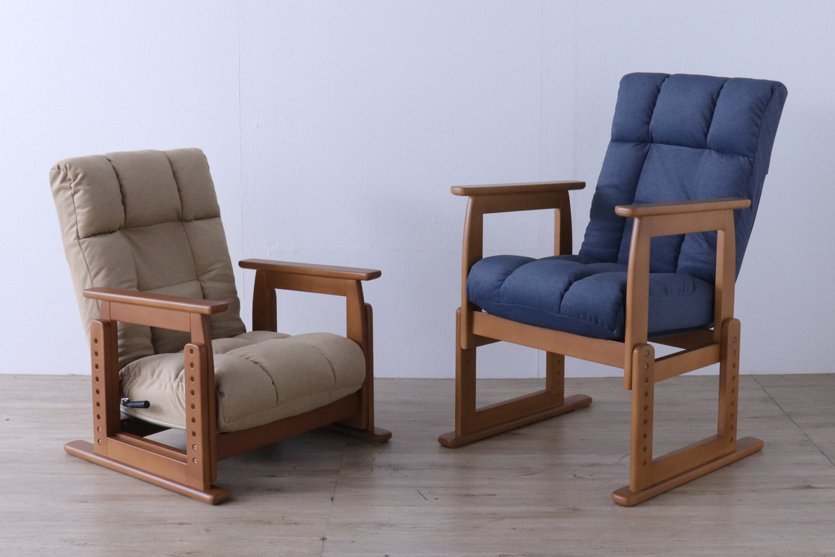 高座椅子 座面高26~47cm 木製肘掛け付き 7段階リクライニング
