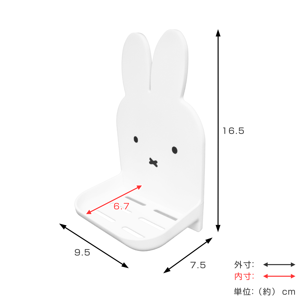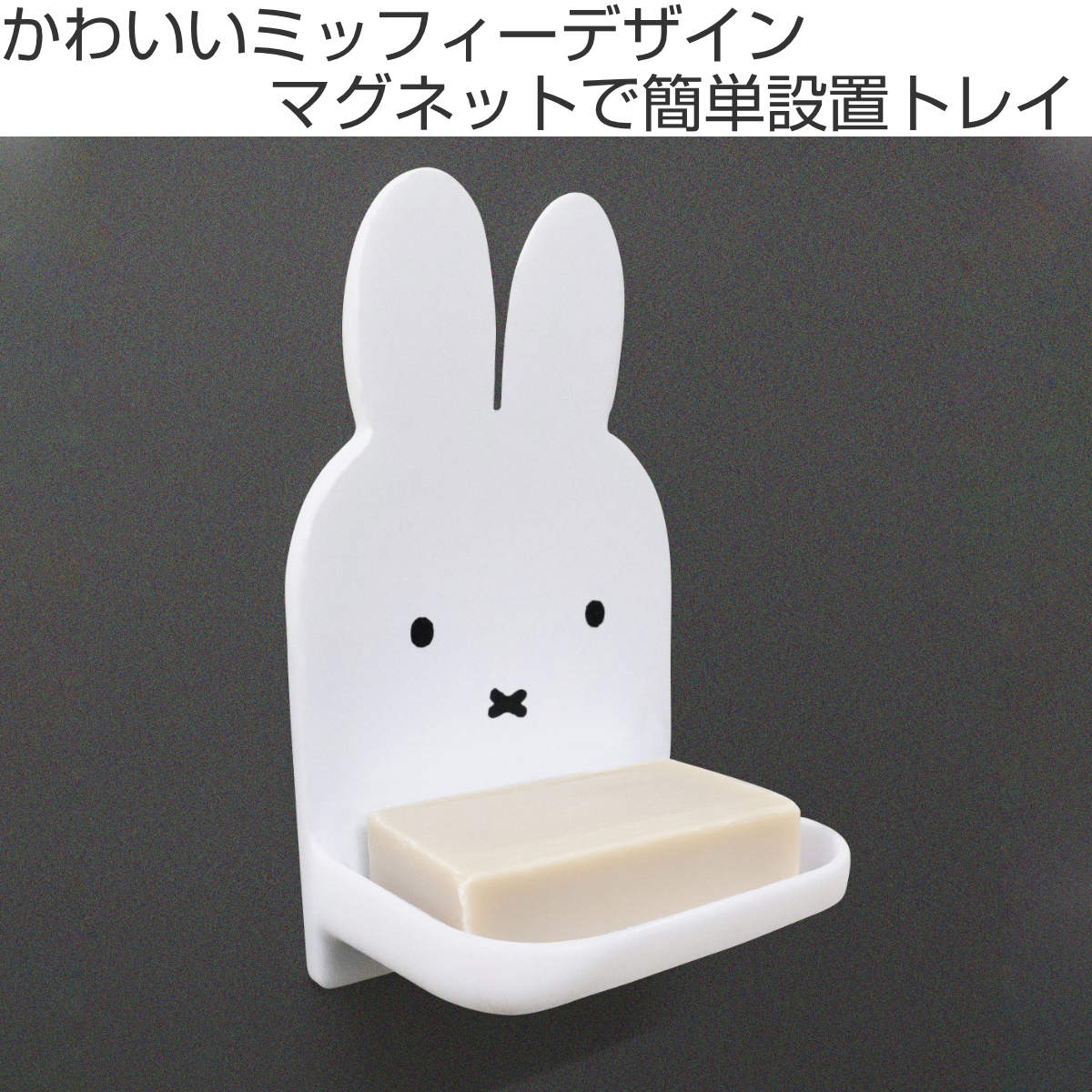 かわいいミッフィーデザインのトレイです。マグネットで浴室の壁や洗濯機、冷蔵庫などに簡単に取り付けることができ、石鹸や洗顔料、スポンジなどの収納に便利で、散らかりがちな小物をすっきり整理できます。ちょこんと顔をのぞかせるミッフィーがアクセントになり、空間をさりげなくかわいく演出します。