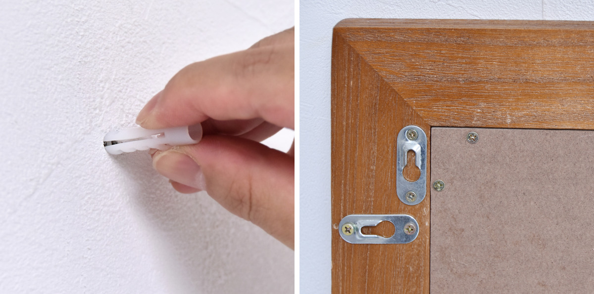 壁側はアンカーボルト付きで、通常の木ネジが使えない場所でも設置可能です。