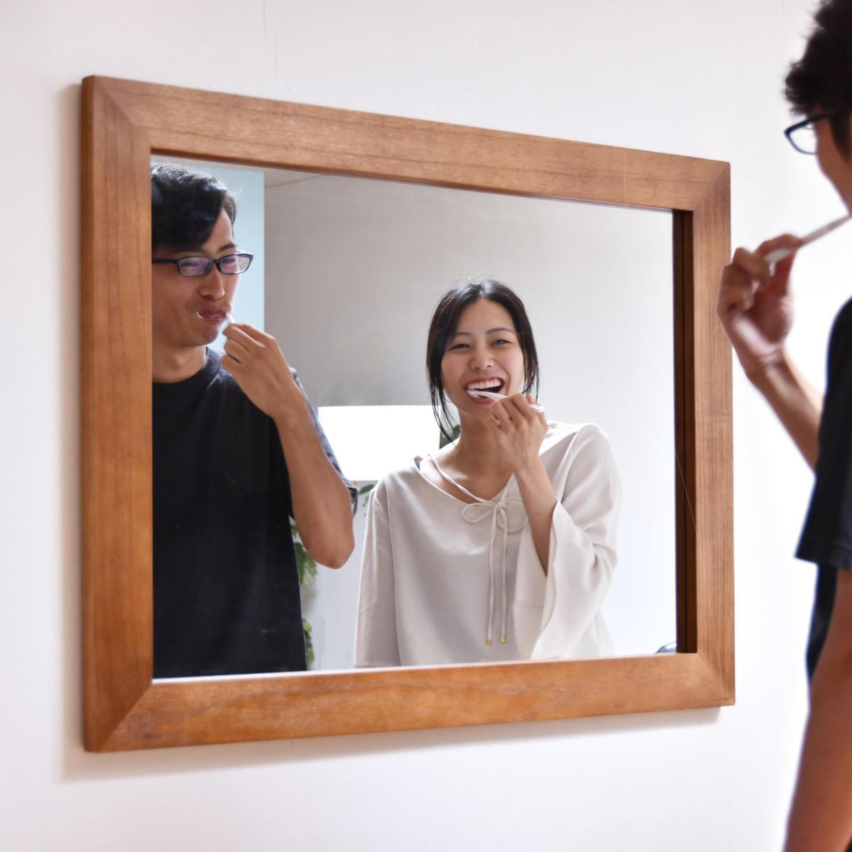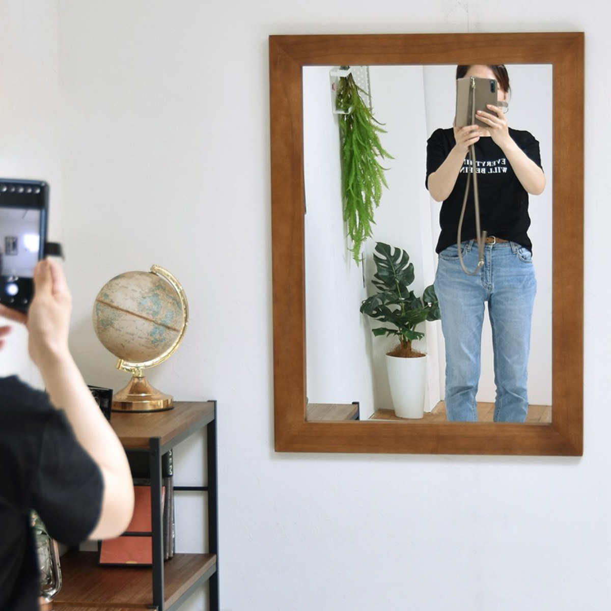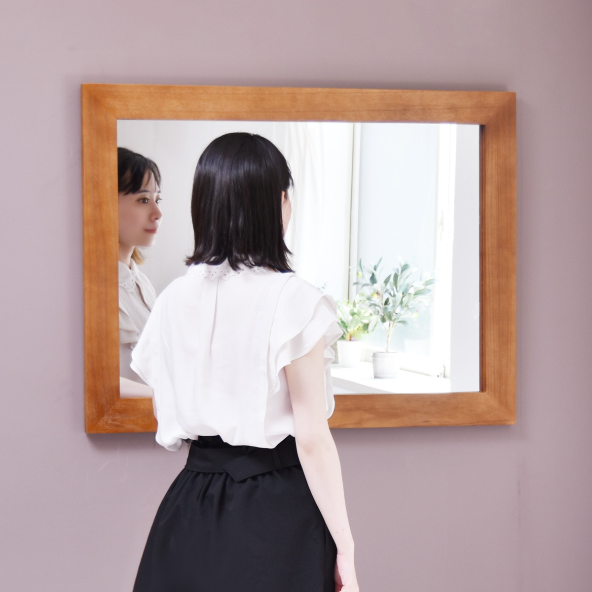 あたたかみのある木の質感を十分に感じられる、7cm幅のフレームです。奥行は3cmあり、通常の壁掛けミラーには無い重厚感を醸し出します。