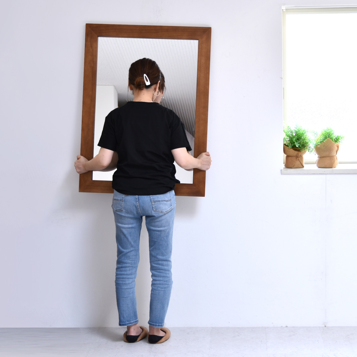縦94cm×横70cm、ミラー部分80cm×56cmの大型サイズです。縦/横どちらの向きでも設置可能なので、インテリアに合わせてお使いいただけます。